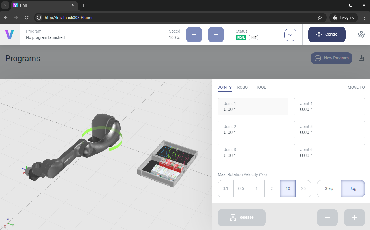 To request an example configuration for development in the Docker container of the voraus.core //virtual, please contact us on our website www.vorausrobotik.com.