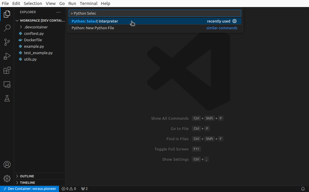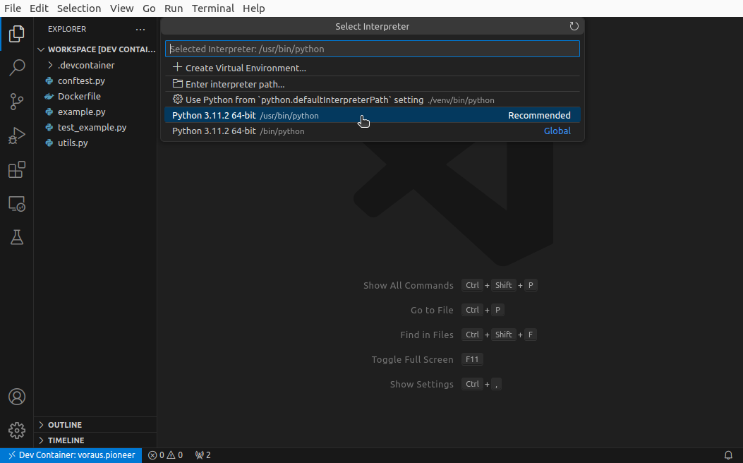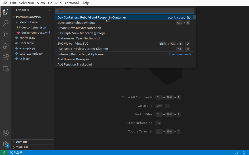 When you are finished with the development, you can leave the Dev Container by pressing ctrl + shift + p,